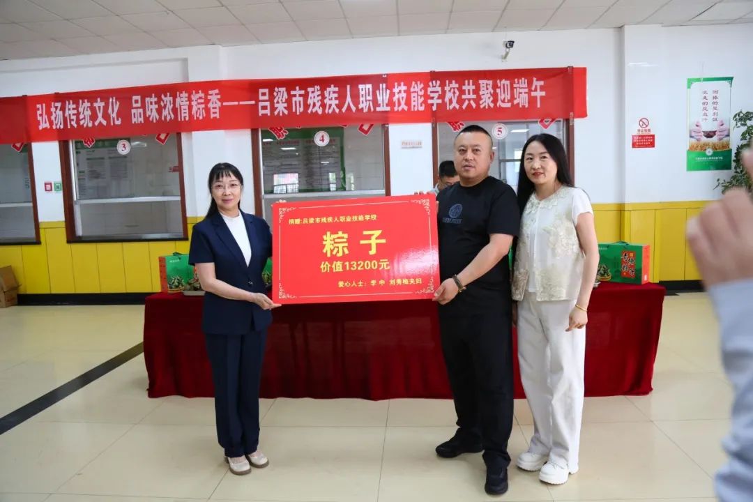 爱心人士李中、刘秀梅夫妇心怀善念,为残障学生送来了价值13200元的爱心粽子,满载着他们对学生的关怀与祝福。这不仅是一份节日的礼物,更是对传统文化的尊重与传承,为学校的端午活动增添了一份浓浓的爱意。校长康丽霞向夫妇回赠捐赠证书,以表对他们的感谢与敬意。这份捐赠,如同一束光,温暖了学生的心田,也彰显了社会对特殊群体的关爱与支持。